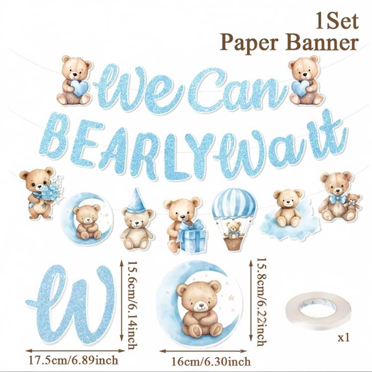 생일 배너: 배너/세트 1개, 장식용 매달린 밧줄 2-3개; "생일 축하합니다" 또는 "환영합니다"라고 인쇄되어 있습니다. 아기 테마의 텍스트