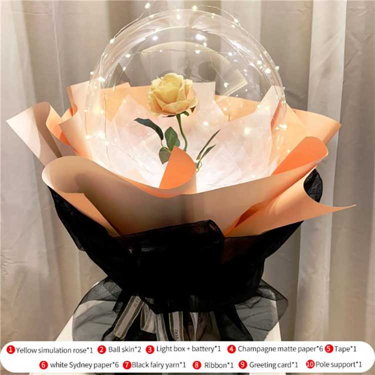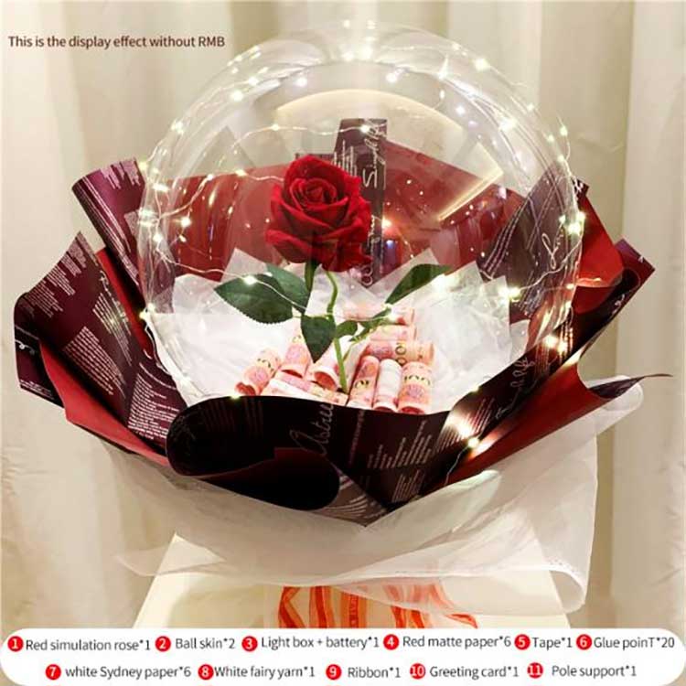 BOBO 풍선믿을 수 없을 정도로 분위기가 좋습니다.투명한 BOBO 풍선과 내장된 장미, LED 조명이 어우러져 밝고 로맨틱한 시각적 효과를 연출합니다. LED 조명도 은은한 빛을 발산해 발렌타인데이, 기념일, 생일, 졸업식, 어버이날 선물로 빼놓을 수 없습니다.