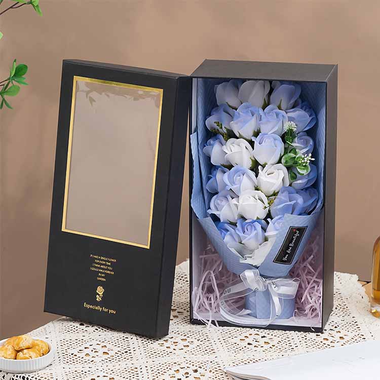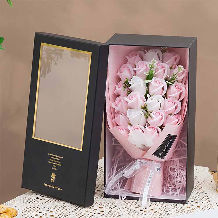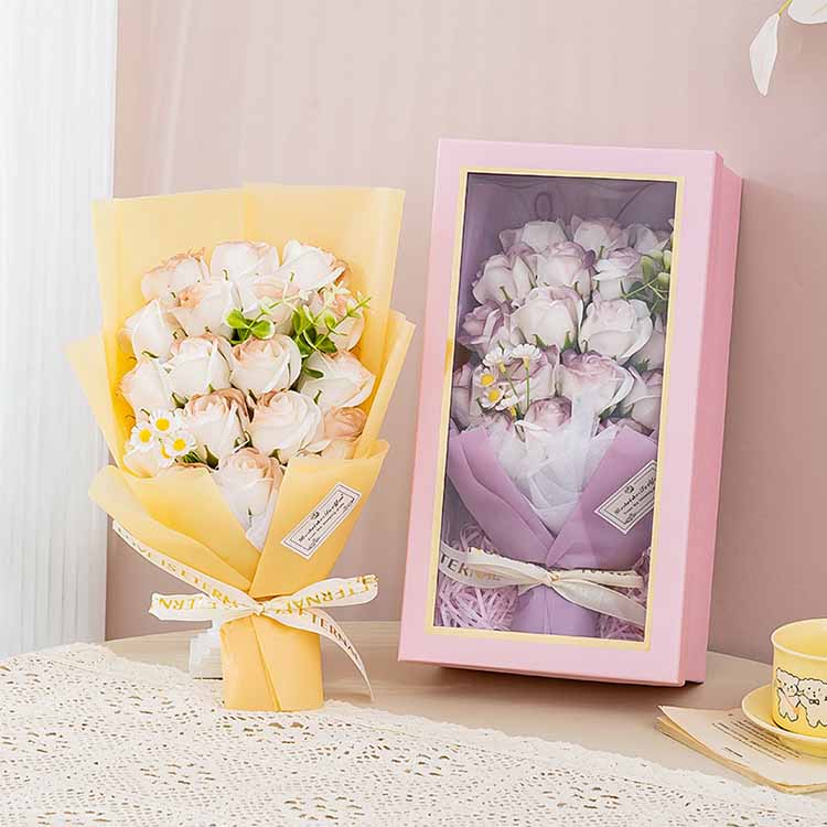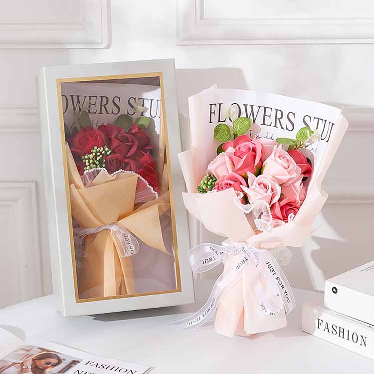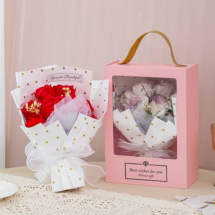 부케 선물 상자는 소형과 대형이 있으며 필요와 선호도에 따라 구매할 수 있으며 포장은 일반적으로 OPP 가방과 가방에 들어 있습니다.