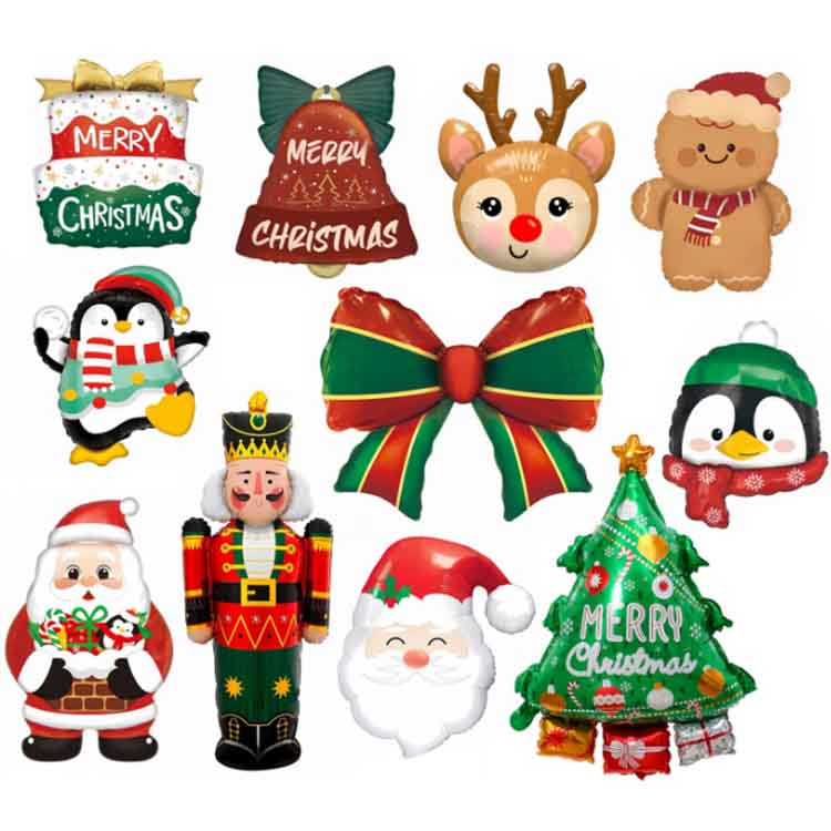 크리스마스 알루미늄 호일 풍선은 디자인에 크리스마스 요소를 포함합니다. 산타클로스, 크리스마스 트리, 눈송이, 종과 같은 고전적인 모양으로 제공되는 이 풍선에는 "메리 크리스마스" 슬로건이 장식되어 있습니다. 색상에는 크리스마스 요소가 포함되어 있으며 주로 빨간색, 녹색, 금색, 은색 등 크리스마스 테마의 색상을 사용하여 축제 분위기를 조성합니다. 미니 30cm부터 대형 100cm까지 다양한 크기로 제공되며 다양한 장식 시나리오와 요구 사항을 충족합니다.