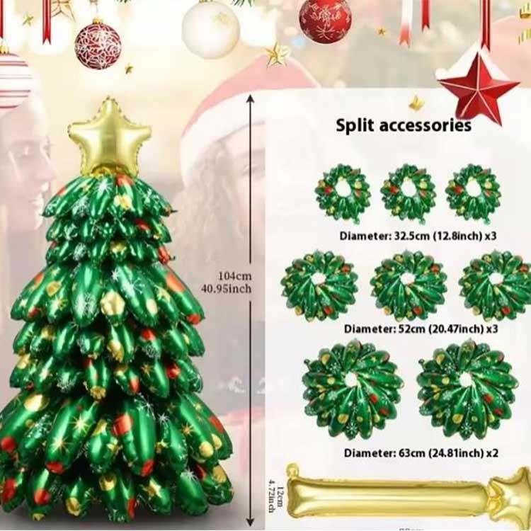 이 크리스마스 트리 스탠드업 포일 풍선은 크기가 130cm x 73cm이며 클래식 녹색 트리와 트리의 두 가지 색상 구성을 제공합니다. 클래식한 그린 트리는 크리스마스 분위기와 잘 어울리며, 컬러풀한 트리는 당사의 신제품으로 홈 데코레이션, 쇼핑몰, 바, 기업 활동에 적합합니다.