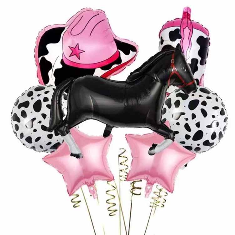 소재 선택 측면에서 보면 카우보이를 테마로 한 알루미늄 호일 풍선이 실용적이면서 미적으로도 좋습니다. 호일 소재의 신장성과 성형성으로 인해 복잡한 모양의 동물이나 물체를 포함하는 호일 풍선에 널리 사용되어 왔습니다. 표면이 매끄럽고 손상되기 쉽지 않습니다.