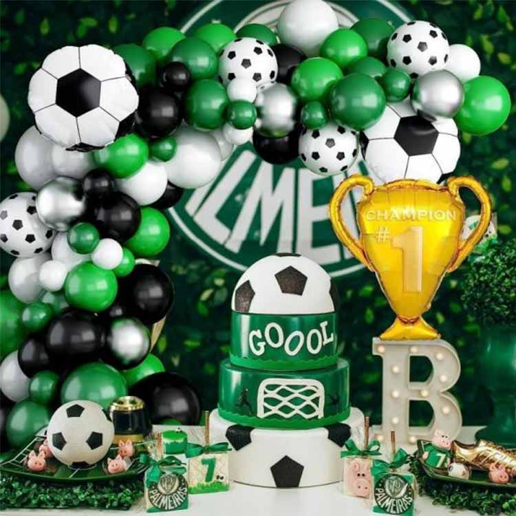 축구 테마의 풍선 아치 키트는 라텍스 풍선, 호일 풍선 및 조립 도구를 포함한 101개의 구성 요소로 구성됩니다. 직경 2~3m의 아치 모양의 장식 배경을 만들 수 있습니다.