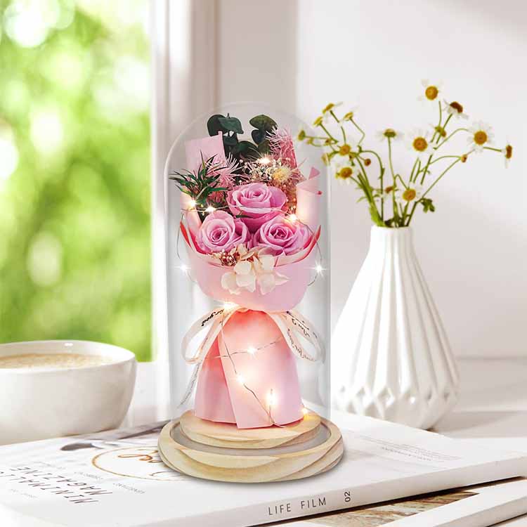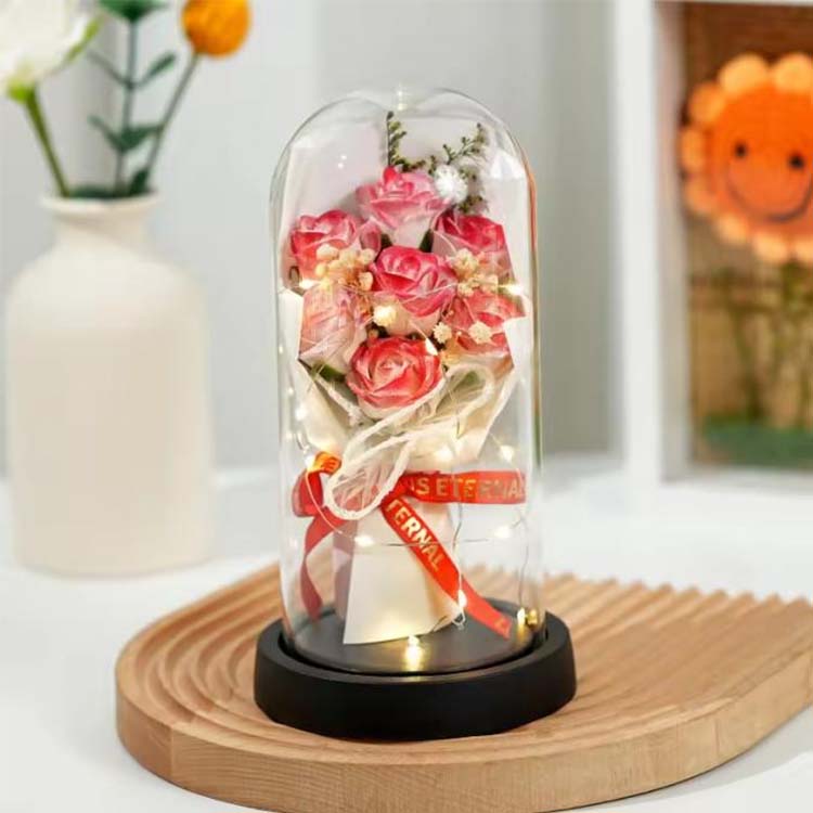 LED 선물 상자가 포함된 유리 돔 비누 장미 꽃다발은 실용적인 기능성과 감상적인 의미를 결합하여 소중히 간직할 가치가 있는 선물입니다. 집에 로맨스를 더하거나 특별한 사람에게 특별한 선물을 보내거나, 따뜻하고 잊을 수 없는 선물이 될 것입니다.