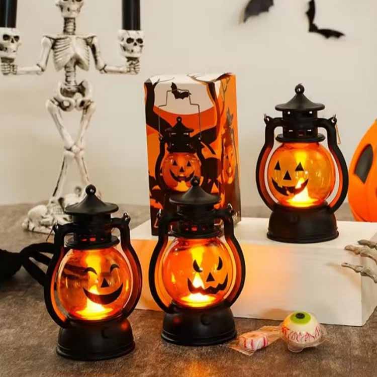 할로윈 호박 랜턴은 가장 상징적 인 할로윈 장식 중 하나입니다. 두꺼운 애완 동물 플라스틱으로 제작 된 랜턴은 유령 얼굴과 같은 조각 디자인과 내부의 광원을 특징으로하며 신비 롭고 섬뜩하며 재미있는 분위기를 조성합니다.