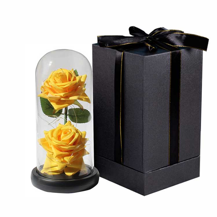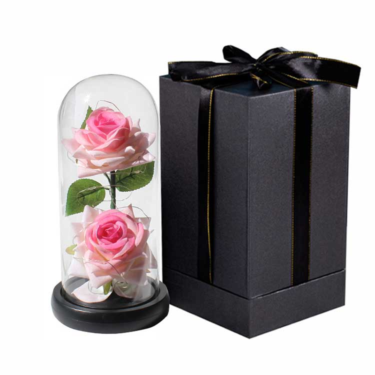 우리는 빛나는 은하 장미 내부에 폼 포장을 사용하여 유리 돔을 보호합니다. 외부 포장에는 표준 검정색 또는 분홍색 상자와 고급 검정색 선물 상자가 포함되어 있습니다. 고객은 선호하는 포장을 선택할 수 있습니다. 프리미엄 포장은 더 높은 판매 가격과 더 큰 이익을 가능하게 합니다.