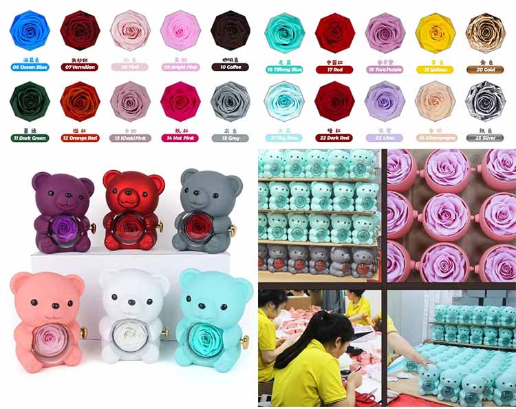 비누꽃과는 다릅니다. 저희 프리저브드플라워 서프라이즈 포옹베어는 신선한 생화를 사용하여 탈수, 색상보존, 성형 등 일련의 특별한 공정을 거쳐 제작됩니다. 이 꽃은 실제 꽃의 풍성함과 모양을 유지하므로 더 오래 지속됩니다! 일반적으로 3~5년 정도 사용할 수 있습니다! 물을 줄 필요가 없습니다! 그들은 활기차고 활기차게 유지됩니다! 이 사려 깊은 선물이 영원히 지속되도록 해주세요!