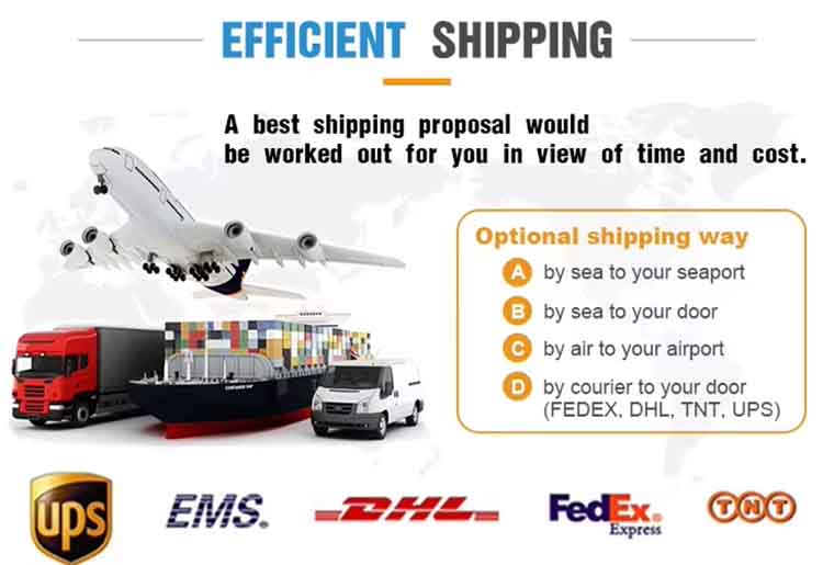 여러 물류회사와 장기적이고 안정적인 파트너십을 맺고 있습니다! 귀하가 세계 어디에 있든 우리는 귀하의 배송물이 귀하의 사양에 따라 제 시간에 귀하에게 배송될 것임을 보장할 수 있습니다.