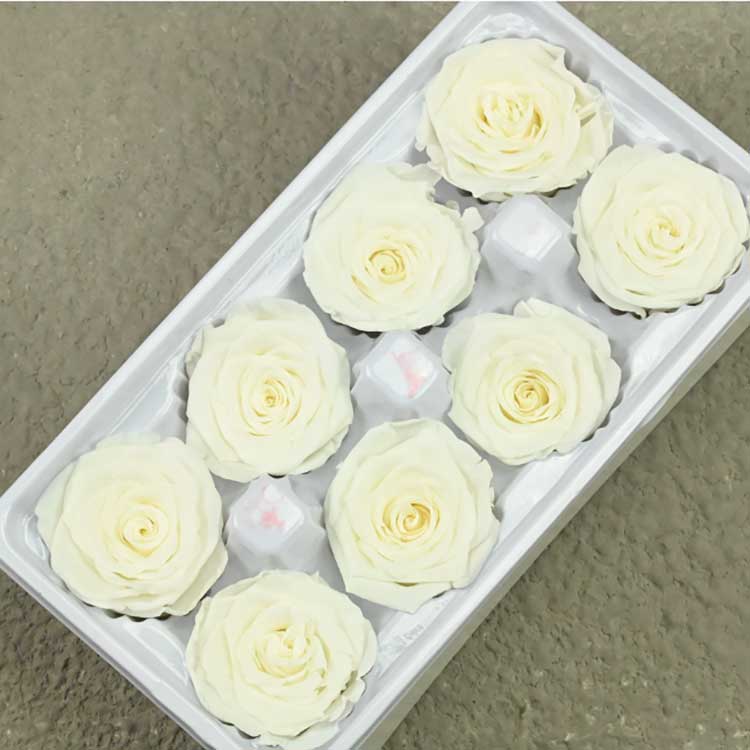 시들지 않는 꽃이라 불리는 프리저브드 장미는 신선한 A등급 장미를 원료로 탈수, 표백, 재염색, 건조 등 10가지 이상의 복잡한 공정을 거쳐 만들어집니다. 싱싱한 꽃의 부드러운 질감과 자연스러운 형태를 그대로 유지하면서도 개화기간을 연장시켜주는 제품입니다. 적절하게 보관하면 3~5년 동안 사용할 수 있습니다.